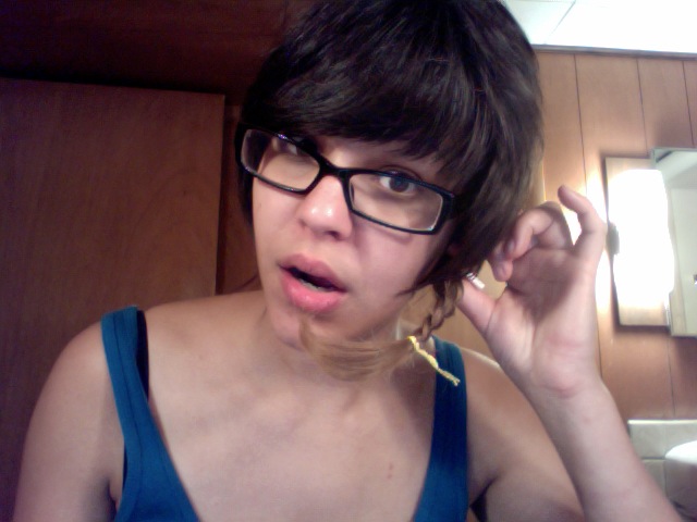 Finish work last night and ate delicious birthday tacos. Decided it was time for a new doo. Nicolette braided up a tail to keep then snipped away.